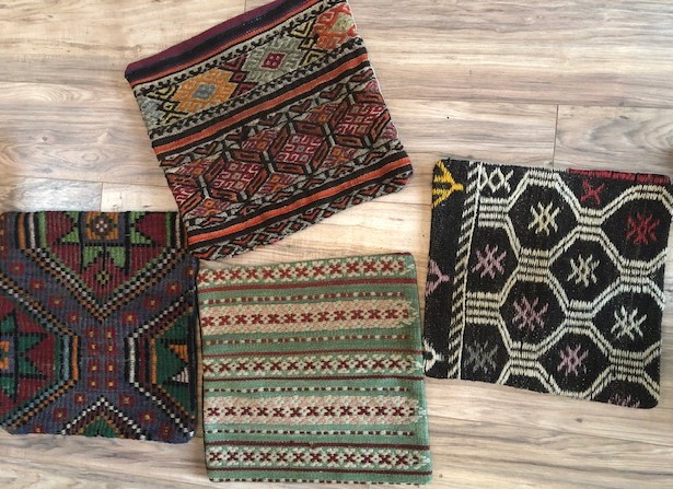 We have many colors and designs on our Pillow Cases. Choose from machine made with silver threading, brushed cotton to Kilim handwoven and Ikat. Prices $25 to $65